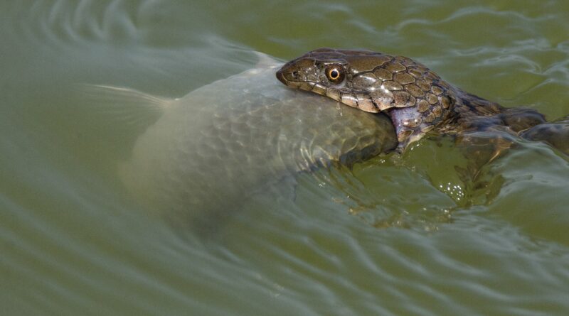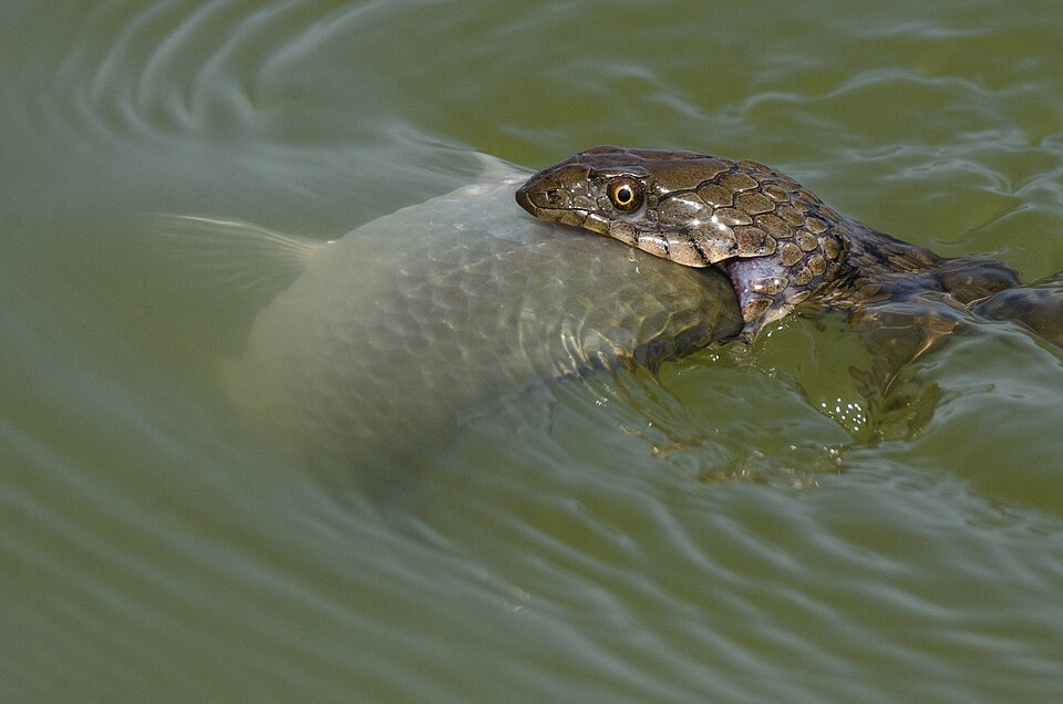 Найкращою світлиною Одещини стало фото водяного вужа зі здобиччю у природному парку «Тузловські лимани». Автор — Олег Марцун. Фото зроблене 29 липня 2021 року.