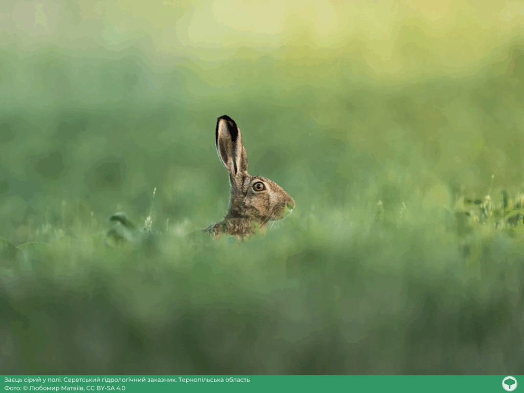 «Світлина “Заєць сірий у Галицькому ботанічному саду лікарських рослин” одна з моїх улюблених. Здається, заєць насолоджувався теплим ранковим сонцем не менше, ніж я. Про це говорить його спокійний погляд та неквапливість у той момент.Того ранку я спостерігав за природою із сховку, у надії, що природа сама створить ідеальний кадр. Так і сталось — вухатий з’явився у кадрі, якийсь час попозував, та побіг далі у своїх справах», — прокоментував переможець.
