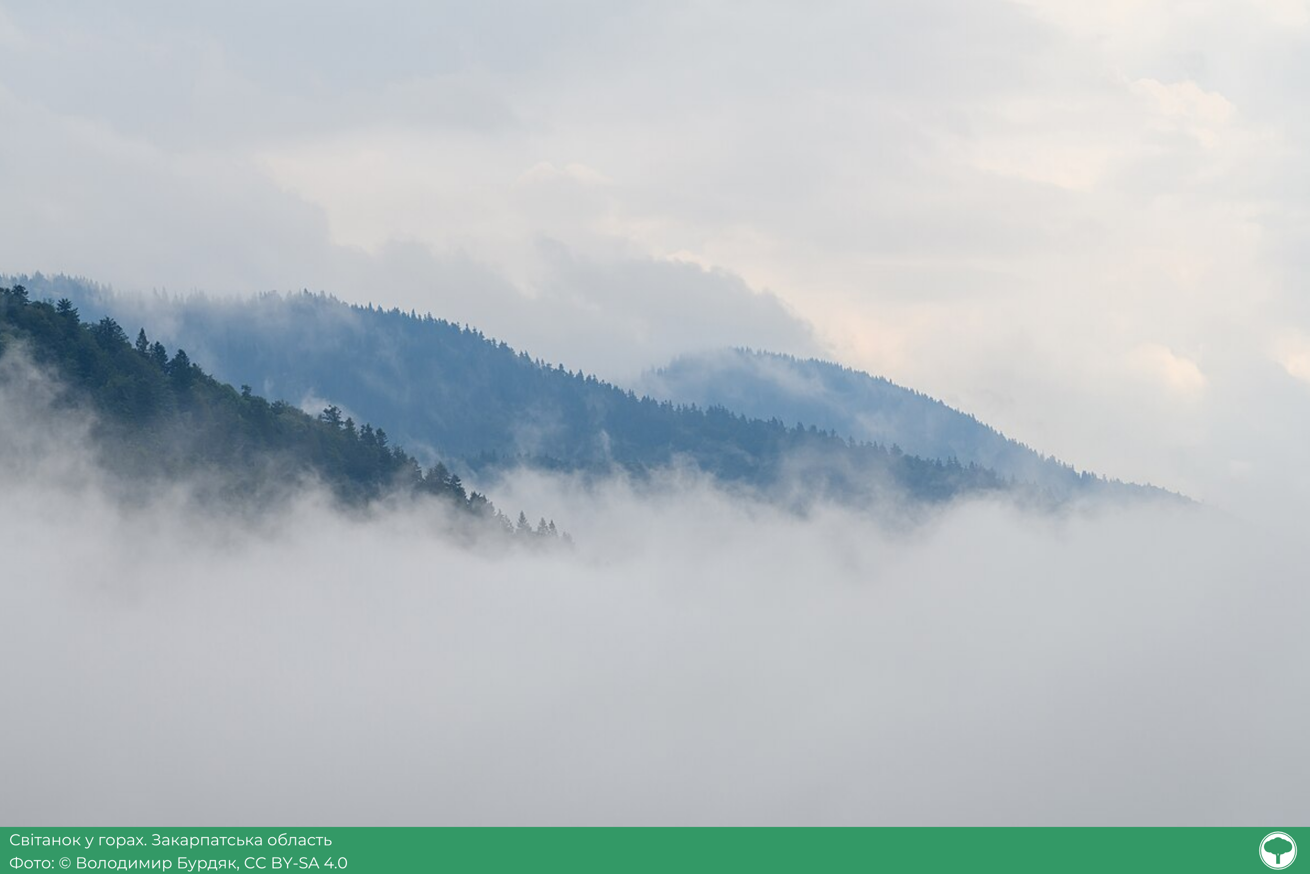 «Це була звичайна одна з багатьох поїздок на Закарпаття. Але цей день запам’ятався дуже гарним світанком…. Проїжджаючи крізь туман раптом появились вершини гір з лісом…. Я встиг зробити декілька кадрів і туман знов затягнув все навкруги. Це були лічені хвилини….. просто вони були в потрібному місці і потрібний час.