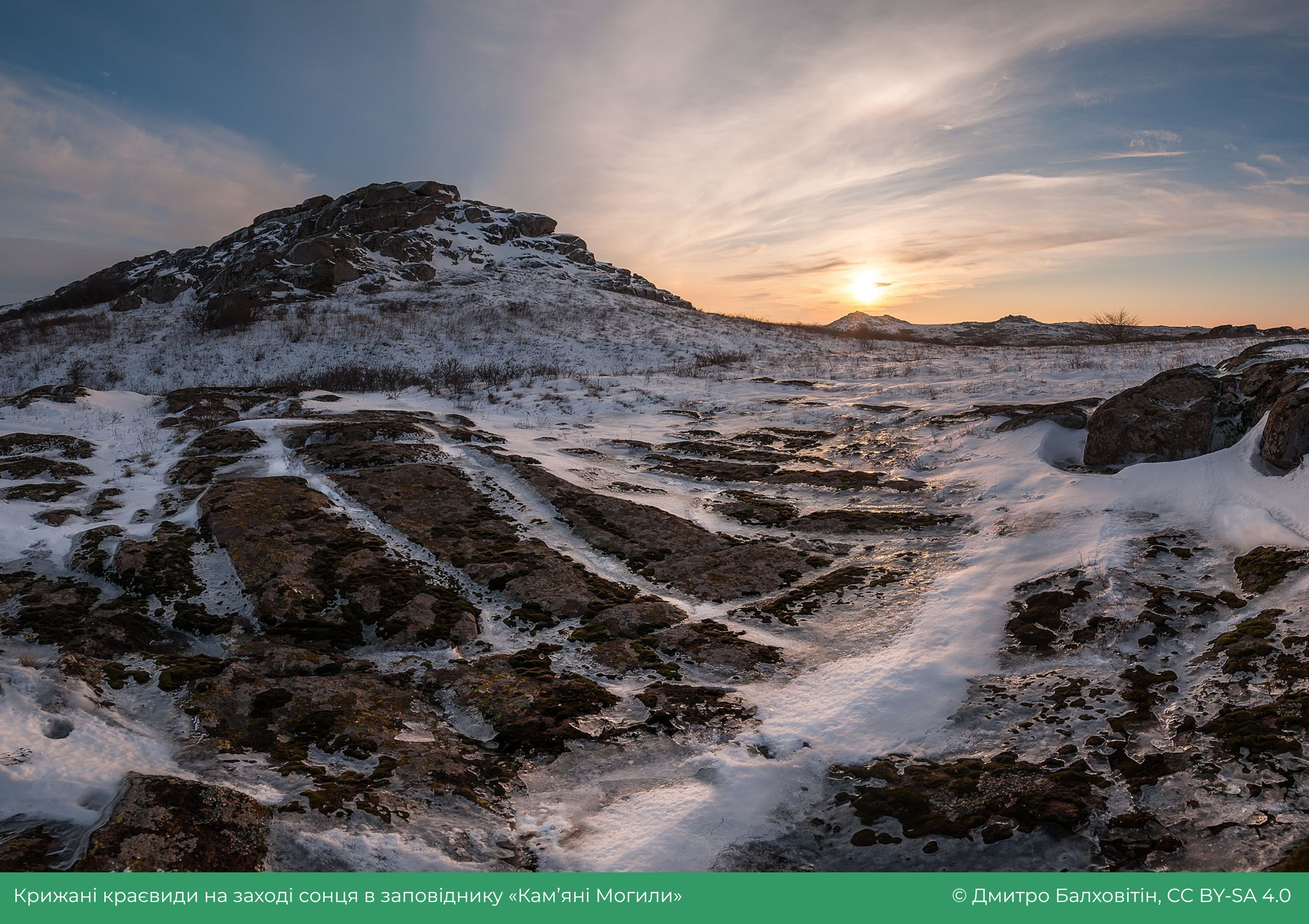 • Крижані краєвиди на заході сонця в заповіднику «Кам’яні Могили»: https://w.wiki/LER7